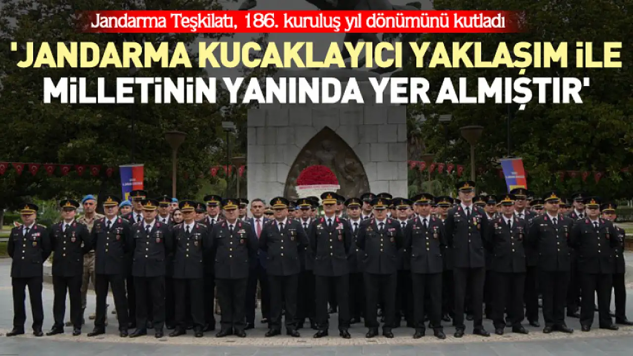 Jandarma Teşkilatı'nın 186. Kuruluş Yıldönümü münasebetiyle Atatürk Anıtı'nda tören düzenlendi. Anıta çelenk sunumu ile başlayan tören, saygı duruşunda bulunulması ve İstiklal Marşı'nın okunması ile devam etti. Jandarma İkmal Üst Teğmen Furkan Ardanuç, Jandarma Genel Komutanlığı'nın tarihçesini okudu.