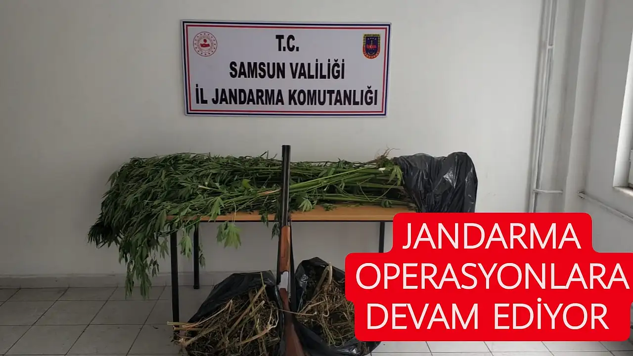 Samsun İl Jandarma Komutanlığı Kom Şube Müdürlüğünce Tekkeköy İlçesinde İlçe Jandarma Komutanlığı ekipleri ile birlikte yapılan operasyon ile gerçekleştirilen arama neticesinde, 74 kök kenevir bitkisi, 2.800 gr kubar esrar maddesi ve 1 adet ruhsatsız av tüfeği ele geçirildi.