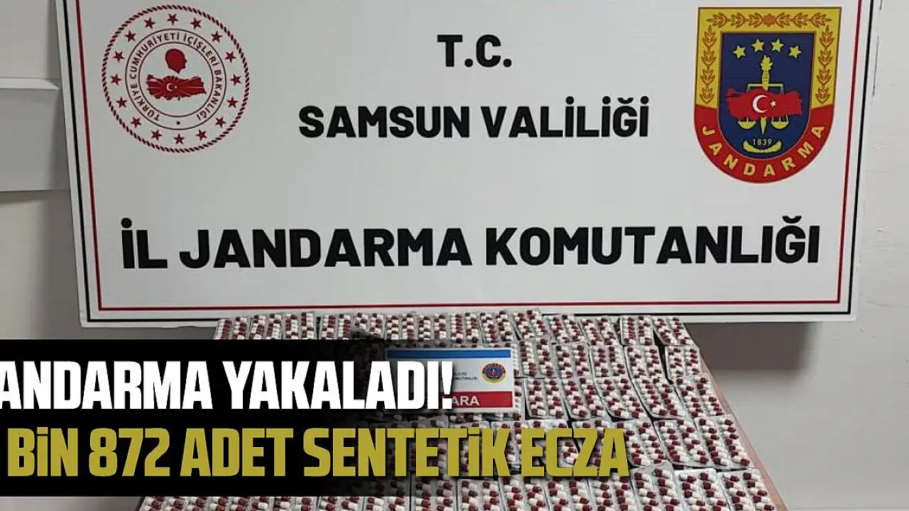 Samsun'da jandarma ekipleri tarafından bir araçta ve evlerde yapılan aramada 2 bin 872 adet sentetik ecza ele geçirildi