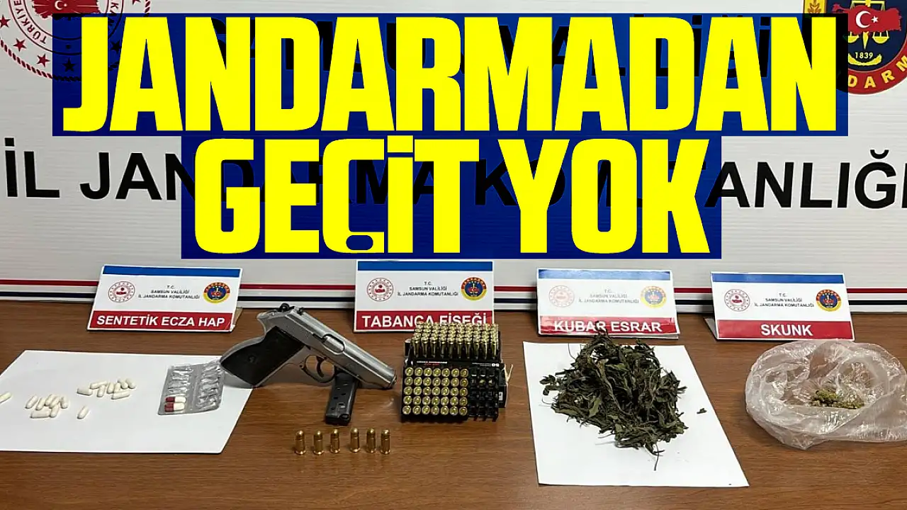 İkametlerdeki aramalarda, 37 gram kubar esrar 17 sentetik ecza hap, 2 gram kenevir ve 3 ruhsatsız tabanca ile mermiler ele geçirildi.
