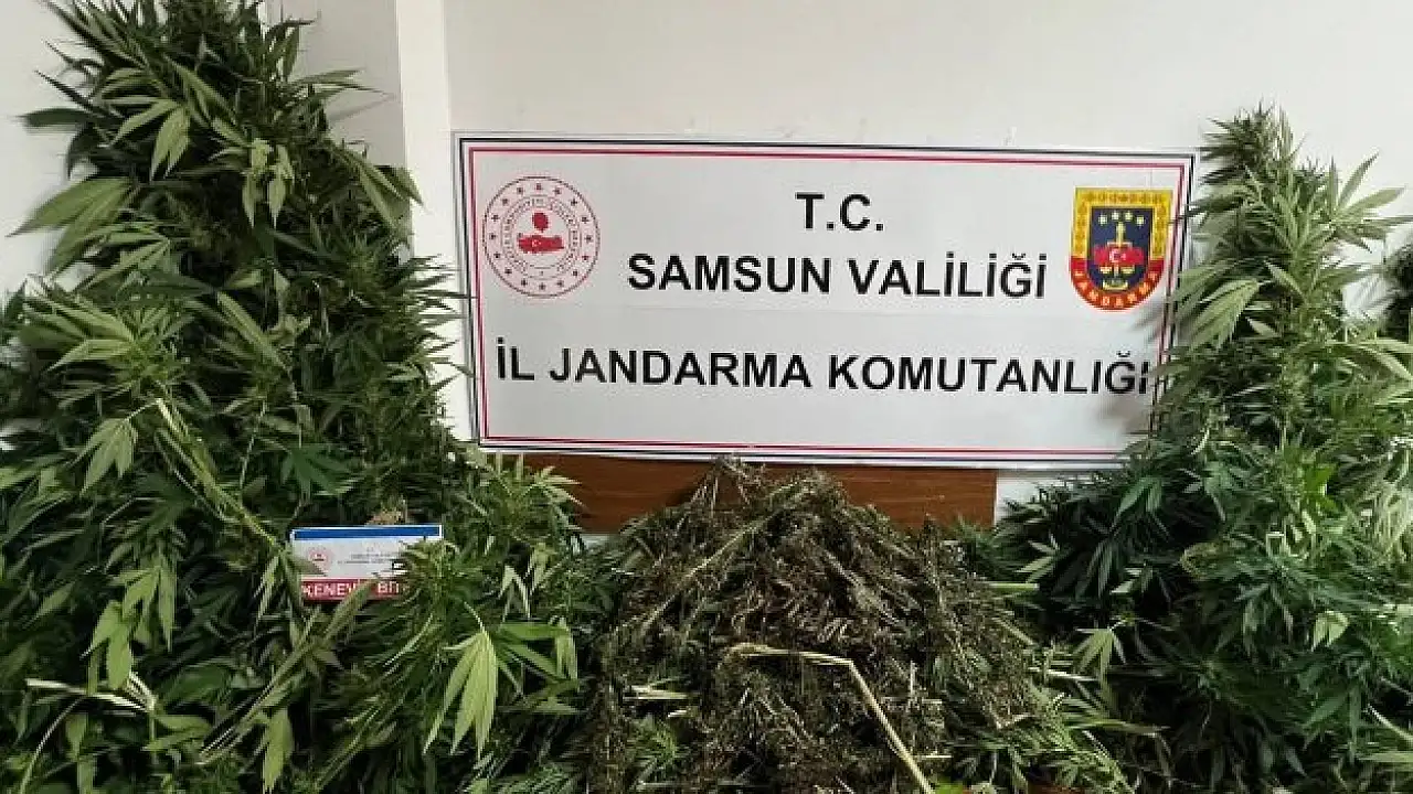 Samsun'da jandarma ekipleri tarafından 7 kilo 34 gram kubar esrar ele geçirildi. Alınan bilgilere göre, Atakum ilçesinde uyuşturucu ile mücadele kapsamında jandarma ekiplerince yapılan çalışmalar sonucunda, B.Ş. (48) isimli şahsın uyuşturucu madde bulundurduğu ve ormanlık alana kenevir ekimi yaptığı bilgisine ulaşıldı. İl Jandarma Kaçakçılık ve Organize Suçlarla Mücadele Şube Müdürlüğü ve Atakum İlçe Jandarma Komutanlığı ekipleri tarafından şahsın evinde ve ormanlık alanda yapılan aramada, 63 Kök kenevir bitkisi, 7 kilo 34 gram kurutulmaya bırakılmış kubar esrar, 15 gram tütünle karışık kubar esrar maddesi ve 1 adet ruhsatsız av tüfeği ele geçirildi. Olayla ilgili B.Ş. gözaltına alındı.