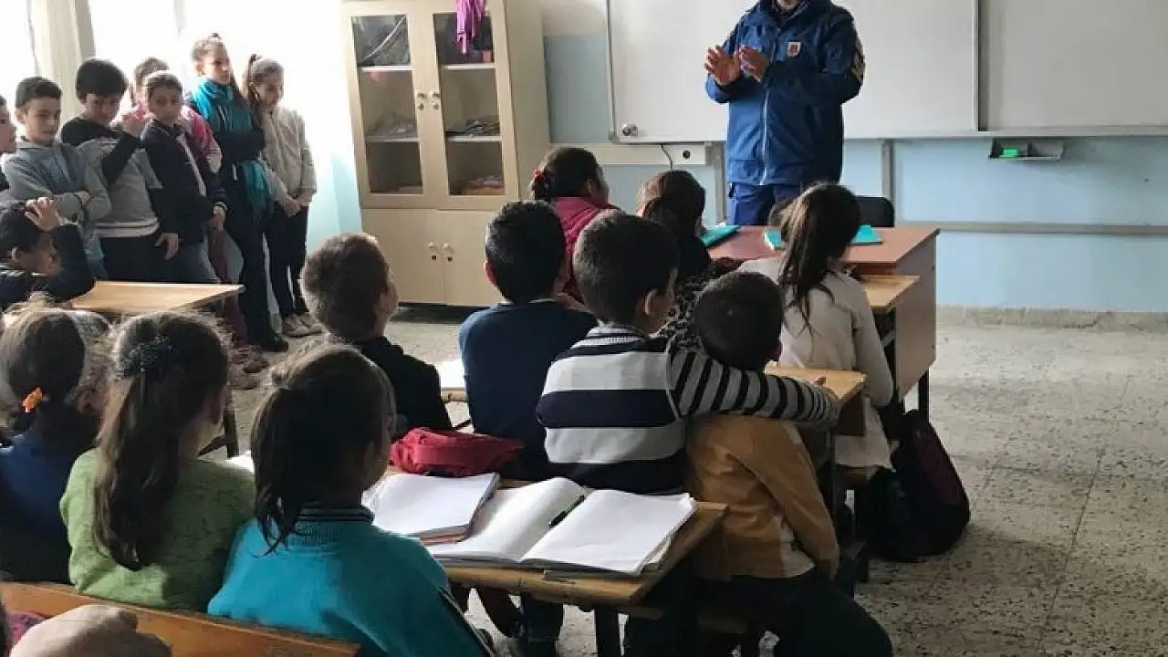 Boğazkaya İlköğretim Okulunda okuyan 92 öğrenciye İlçe Jandarma Trafik Tim Komutanlığı ekiplerince, yayaların uyması gereken kurallar, emniyet kemerinin önemi, trafik işaret ve levhalarının önemi, bisiklete binme ve servis araçlarında uyulması gereken kurallar hakkında bilgiler verildi.
