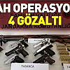 Edinilen bilgiye göre, Samsun'un Çarşamba ilçesinde Samsun İl Jandarma Komutanlığı Kaçakçılık ve Organize Suçlarla Mücadele (KOM) Şube Müdürlüğü, İstihbarat Şube Müdürlüğü, JASAT ve Çarşamba İlçe Jandarma Komutanlığı ekiplerince silah kaçakçılığı ile mücadele kapsamında yapılan çalışmalarda S.Y., Y.D., M.C. ve K.Y. isimli şahısların evlerine operasyon düzenlendi. Bomba arama köpeği "Mani" eşliğinde yapılan aramalarda, 3 adet ruhsatsız tabanca, 508 adet tabanca fişeği, 3 adet ruhsatsız av tüfeği ve 6 adet faturasız kurusıkı tabanca ele geçirildi, 4 kişi gözaltına alındı. Soruşturma devam ediyor.