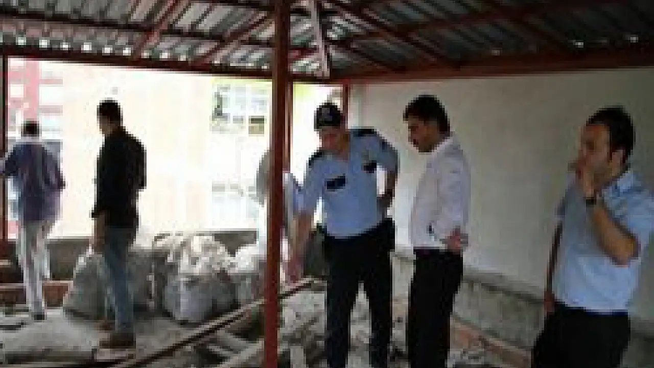 3194 Sayılı İmar Kanunu aykırı olarak çatıyı inşa eden hane sahiplerine Belediye Encümeni'nin yıkım kararını okuyan Kaçak İnşaat Yıkım Ekipleri, olaysız bir şekilde çatıyı yıktı.