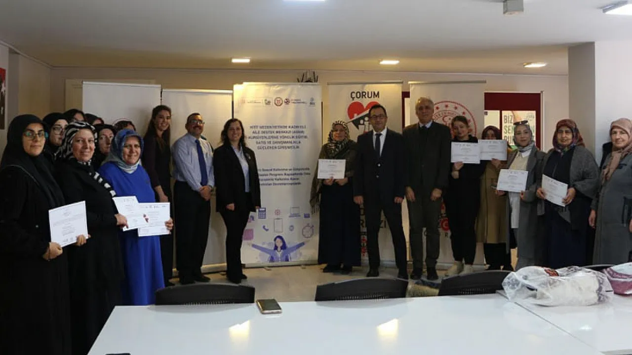Eğitim sürecini başarıyla tamamlayan 40 katılımcıya sertifikaları, 29 Ocak’ta düzenlenen kapanış töreninde takdim edildi. Törene Çorum Sosyal Yardımlaşma ve Dayanışma Vakfı Müdürü Zekeriya Doğan, Çorum Yatırım Destek Ofisi Koordinatörü Tuğba Purtul Kılıç ve OKA Sosyal Kalkınma ve Girişimcilik Birimi Uzmanı Hüseyin Akın Uğurlu katıldı.