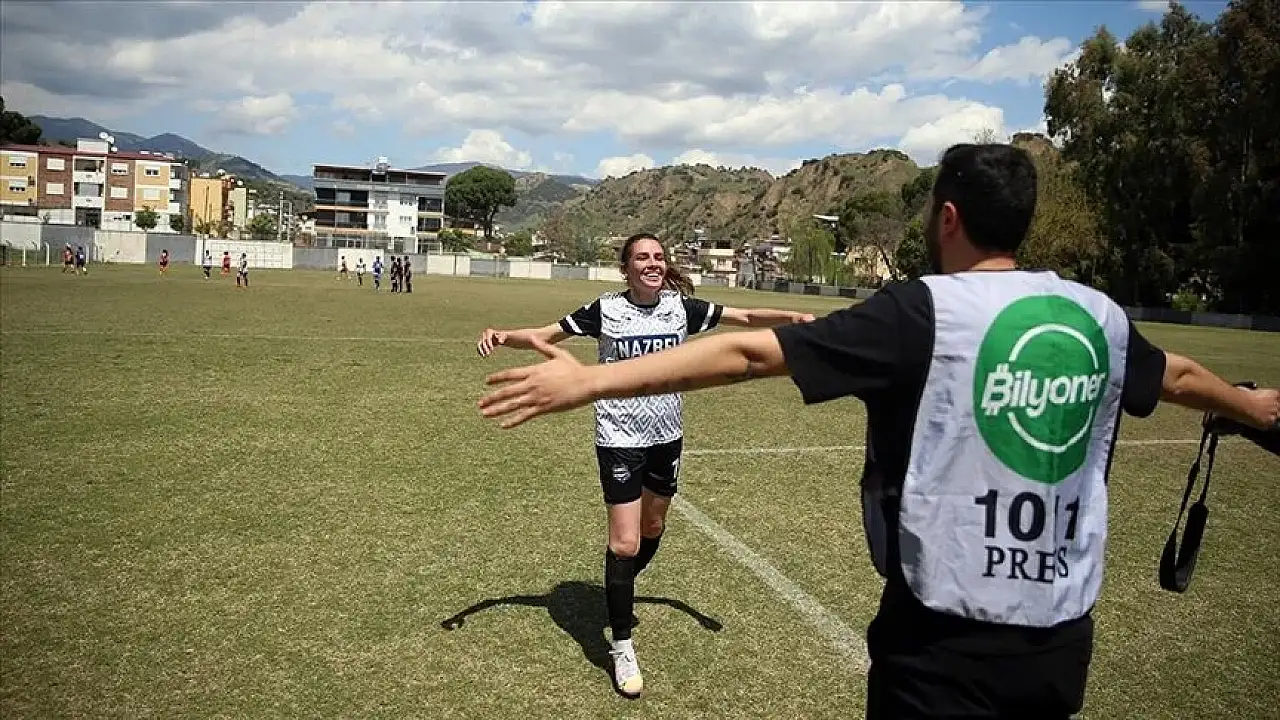 TFF Kadınlar 3. Ligi takımlarından Nazilli Belediyespor'un oyuncusu Gamze Çelik (28), gol attıktan sonraki sevincini tüm maçlarında kendisini yalnız bırakmayan foto muhabiri eşiyle paylaşıyor.
