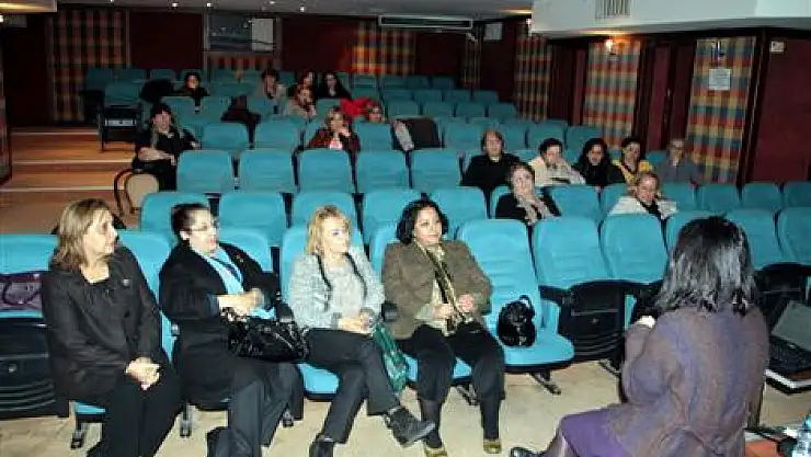 Anakent İş Merkezi YG21 toplantı salonunda düzenlenen konferansta Mor Çatı Kadın Sığınağı Vakfı Üyesi Av. Çiğdem Hacısoftaoğlu, kadına yönelik şiddet, şiddetin önlenmesi ve şiddetle mücadele konulu sunum yaptı.