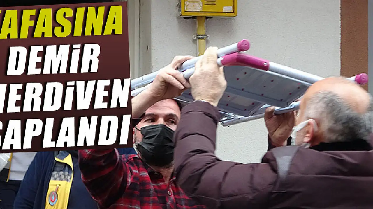 Samsun'da akıllara durgunluk veren bir ev kazası yaşandı. Evin içerisinde yukarıda bir yerde duran demir merdiven düşerek adamın kafasına saplandı. Talihsiz adam kafasındaki merdivenle ambulansa alınarak hastaneye kaldırıldı.
