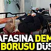 Park halindeki kamyondan kafasına demir su borusu düşen bisiklet sürücüsü kanlar içinde kalarak yaralandı.