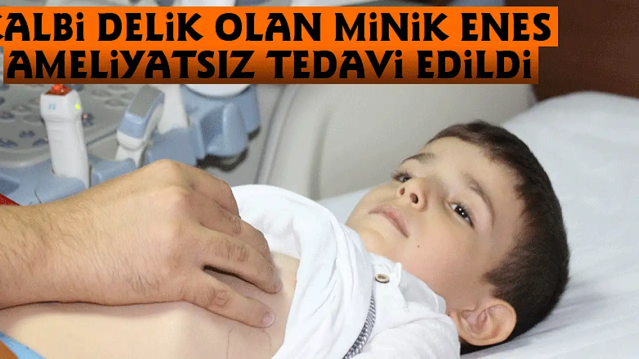 Kalbi delik olan minik Enes ameliyatsız tedavi edildi