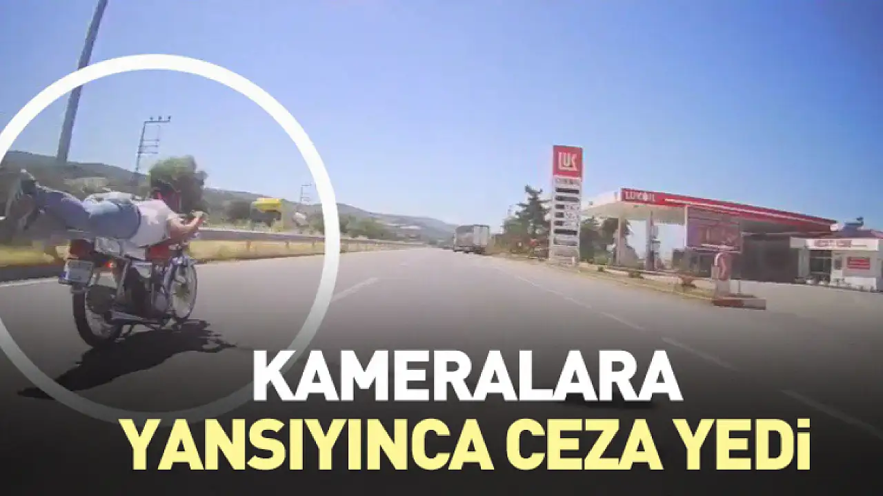 Samsun'un Yakakent ilçesinde motosikletiyle seyir halindeyken tehlikeli hareketler yapan bir sürücü, başka bir aracın kamerasına yakalandı. Görüntüler üzerine harekete geçen polis ekipleri, motosiklet sürücüsüne idari para cezası uyguladı.