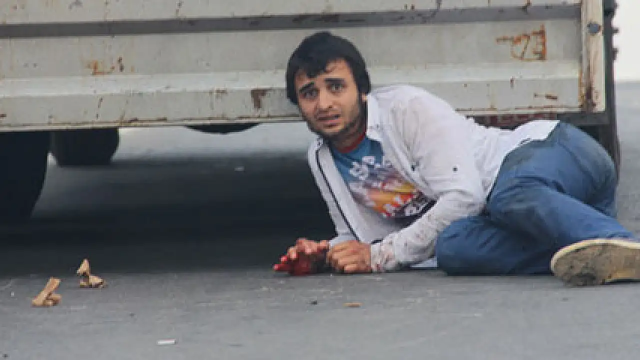 Yaralının yanında mahsur kalan muhabirimiz Alper Korkmaz merkezi arayarak ‘Alo günaydın abi. Burada çatışma çıktı. buraya ekip gelsin. Kamera falan devrildi bozuldu. Çok yaralı var. Aynı yer karakolun orası. Telefonla çekmeye çalışıyorum işte yaralılar var kaldık arada’ dedi.