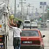Adana'da kırmızı ışıkta bekleyen kamyonlardan karpuz çalan çocuklar, kameralar tarafından görüntülendi.