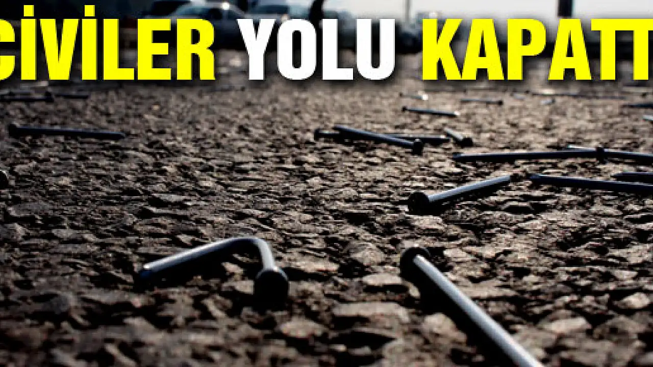 KAMYONDAN YOLA DÖKÜLEN ÇİVİLER TRAFİK KAPATTI