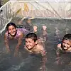 Yaklaşık 1 buçuk ton su ile doldurduğu kasasında Ömer Boyacı'nın 4 çocuğu hem serinliyor hem eğleniyor.