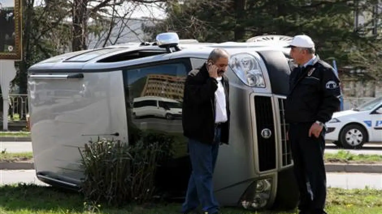 Samsun'da bir kamyonetin refüje devrilmesi sonucu maddi hasar meydana geldi
