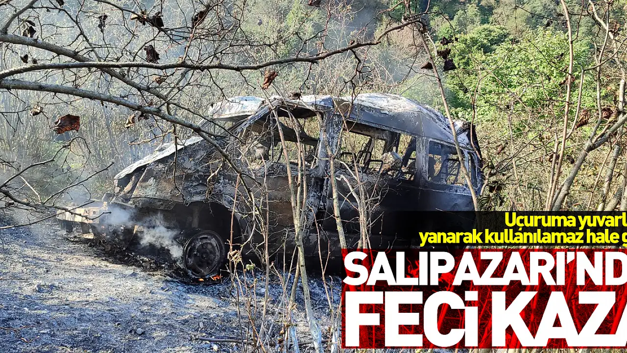 Samsun'un Salıpazarı ilçesinde kamyonetle çarpıştıktan sonra uçuruma yuvarlanan minibüsteki 4 kişi yaralandı, yanan araç kullanılamaz hale geldi