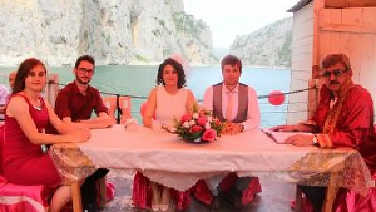 Son derece eğlenceli ve huzurlu bir ortamda gerçekleşen nikah töreninde pasta kesildi, dans edildi ve oyunlar oynandı. Kanyonda sık sık fotoğraf çektiren çift, nikah konusunda neden bu doğa harikası mekanı seçtiklerini de açıkladılar.