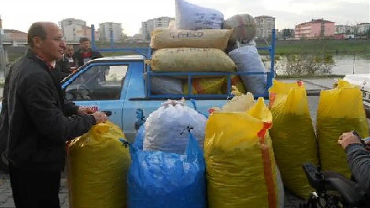 Çarşamba Bedensel Engelliler Derneği Yönetim Kurulu Başkanı Mustafa Uçar ve Üyesi Kerim Deniz, “Mavi kapak toplama kampanyasında” toplanan bütün kapakların sanayi bölgesinde plastik üretim firmasına geri dönüşüm olarak teslim ettiler. Toplam 25 adet büyük çuvallarla toplanan kapaklar geri dönüşüm de teraziye konularak tartıldı. Tartı sonucunda toplanan kapakların 500 kilogram gelmesi üzerine ÇABED üyelerinin sevinçleri görülmeye değerdi.
