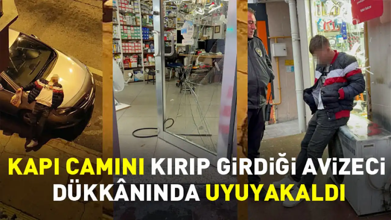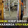 Kapı camını kırıp girdiği avizeci dükkânında uyuyakaldı