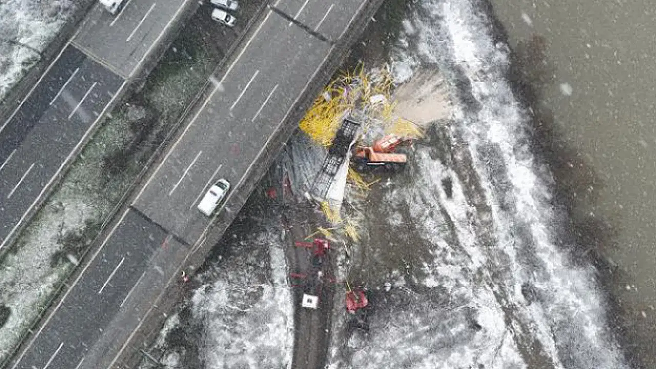 Anadolu Otoyolu Düzce kesiminde çarpışan tır ve kar kürüme aracı köprüden uçtu