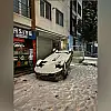 Kar küreme kamyonunun çarptığı otomobil ters döndü