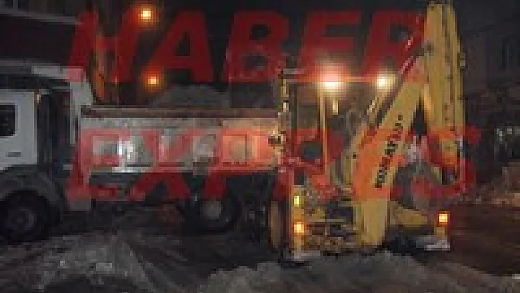 Çalışmalarda kiralanan araçlar dahil 18 iş makinesi sabaha kadar kar ve buz temizliği yaptı.