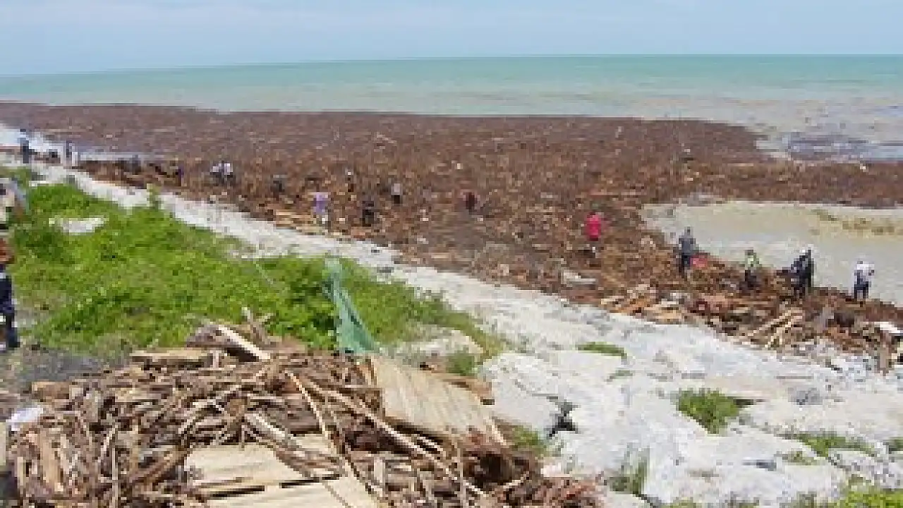 Sinop ve bölgesinde dün gece başlayan aşırı yağışlar nedeniyle oluşan sel suları Karadeniz'i 'odun denizi'ne çevirdi