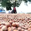 Trabzon'da hasat sonrası çuvallarla topladıkları ürünlerini kurutmak zorunda olan bazı üreticiler, düz bir zemin arayışına Karadeniz Sahil Yolu'ndaki kaldırımlarda çözüm buldu.