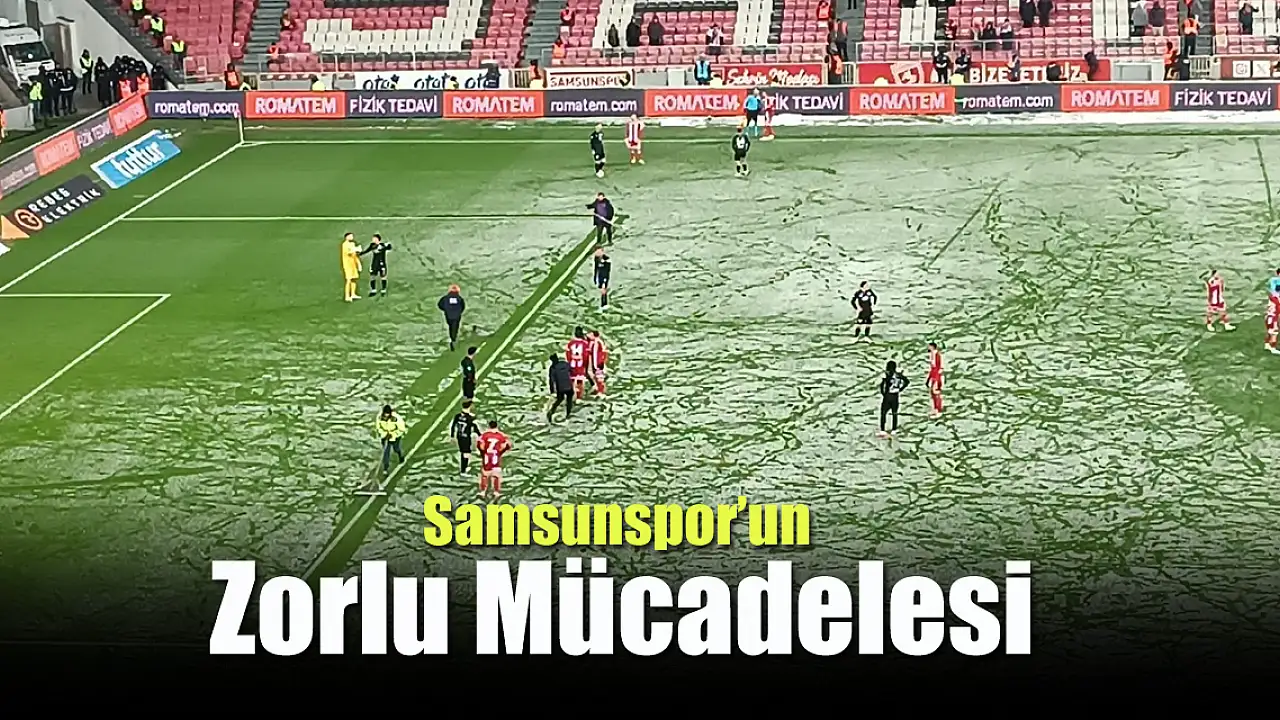 Trendyol Süper Lig'in 25. haftasında, Samsun Yeni 19 Mayıs Stadyumu'nda oynanan Samsunspor - Çaykur Rizespor karşılaşması, yoğun kar yağışı altında devam ediyor