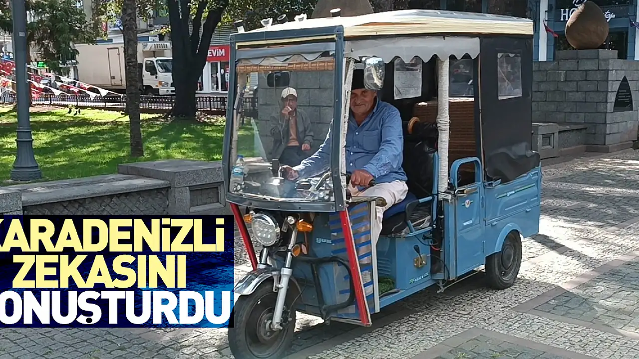 Samsunlu 65 yaşındaki Cemil Bengi, 1 yıl önce aldığı 3 tekerli elektrikli motosikletinin yolda giderken şarjının bitmesi ve her gün aküleri şarj etme işinden bunalınca Karadenizli zekasını konuşturdu