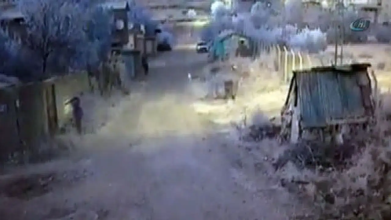Diyarbakır'da teröristler tarafından Hazro İlçe Emniyet Müdürlüğü ile ilçe jandarma karakol komutanlığına düzenlenen eş zamanlı saldırıda, roket atmaya çalışan bir teröristin öldürülme anı güvenlik kamerası tarafından saniye saniye kaydedildi.