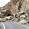 Kara yolunun 8. kilometresinde yamaçtan kopan toprak ve kaya parçalarının yola dökülmesi nedeniyle ulaşım durdu.