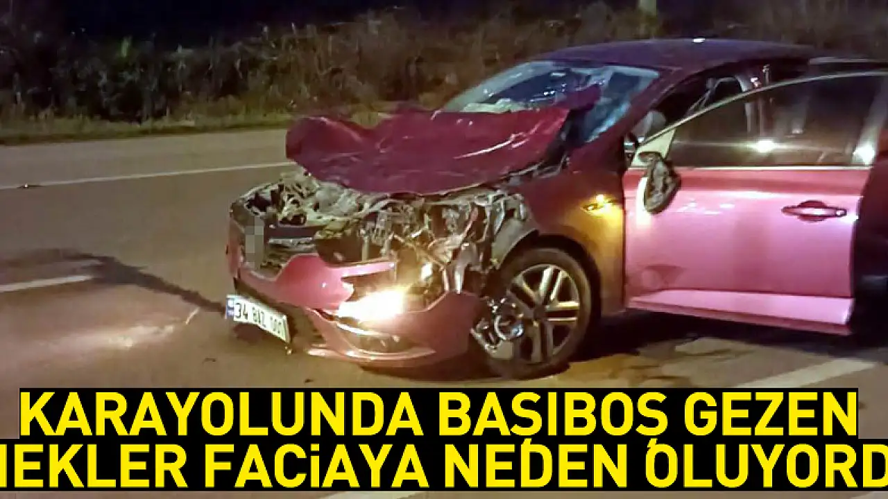 Karayolunda başıboş gezen inekler faciaya neden oluyordu