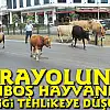 Karayolunda başıboş hayvanlar trafiği tehlikeye düşürdü