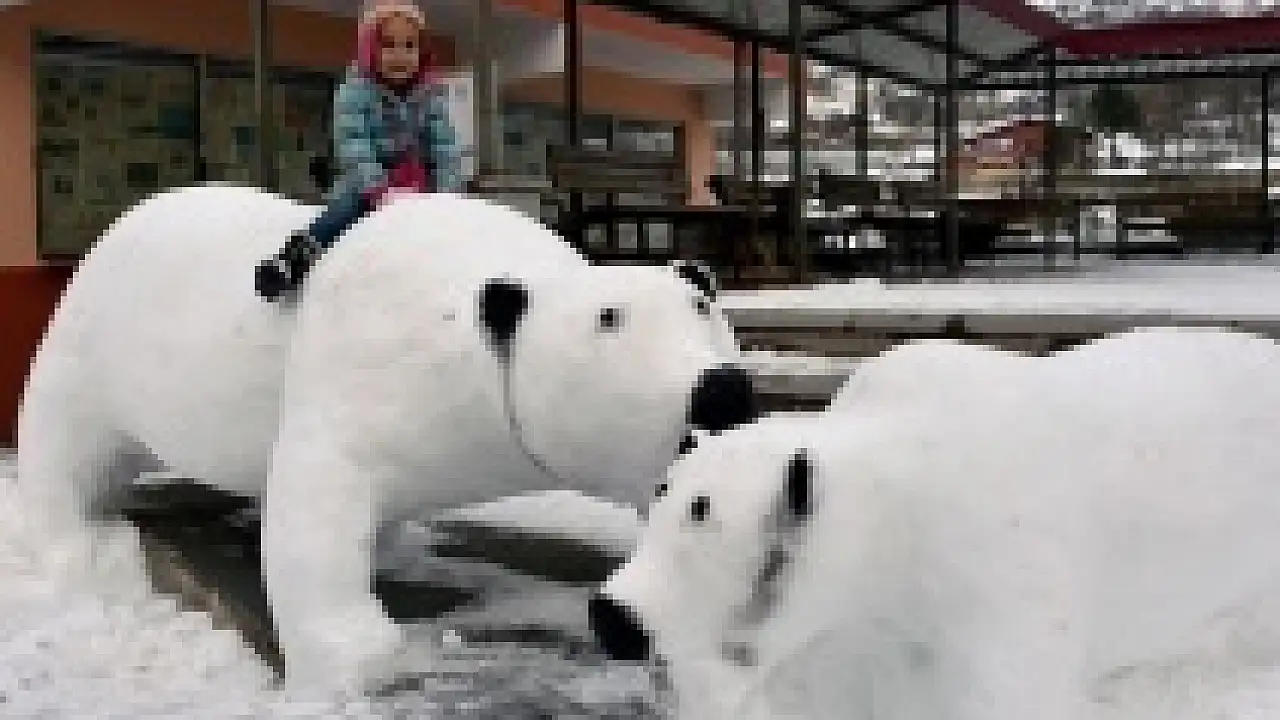 Gümüşhaneli kamyon şoförü Cihan Oral yoğun kar yağışının ardından içindeki sanat aşkını kardan adam yerine 'kardan kutup ayısı' yaparak ortaya koydu.