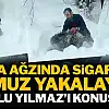 Domuzu yakalayan kişinin Şenel Yılmaz (41) olduğu öğrenildi. Karlı yolda araçtan inerek domuzu kovalayan Yılmaz’ın, yakalama sırasında ağzındaki sigarayı bile düşürmemesi dikkat çekti.