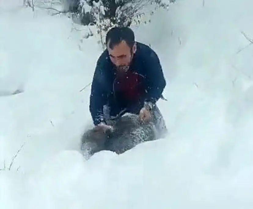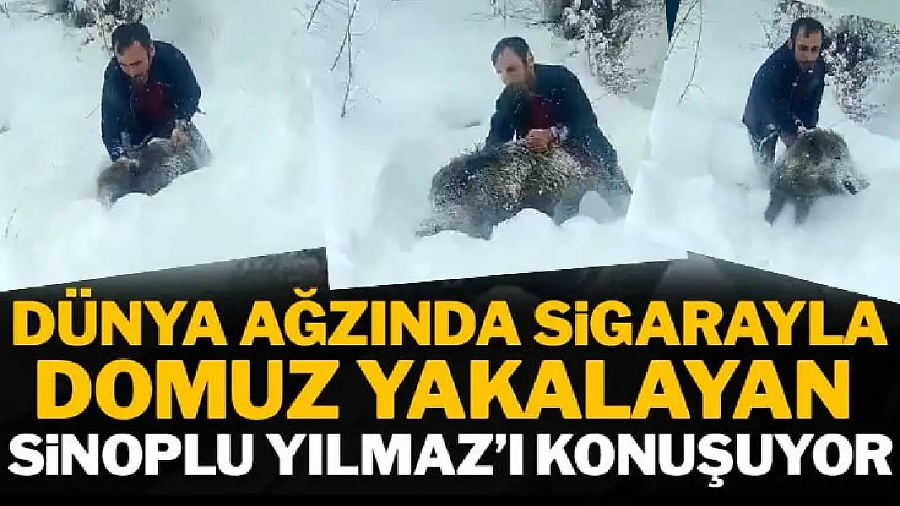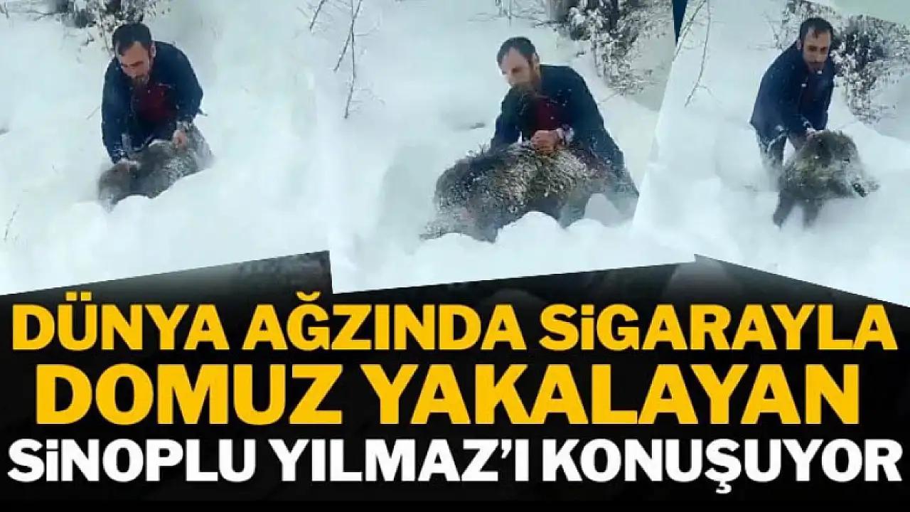 inop'un Erfelek ilçesine bağlı Avlağasökü köyünde domuz sürüsüyle karşılaşan bir vatandaş, karda kaçmaya çalışan bir yavru yaban domuzunu elleriyle yakaladı. O anlar sosyal medyada büyük yankı uyandırdı.