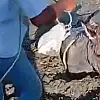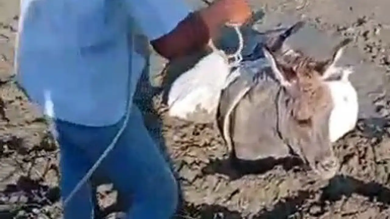 Kars’ın Akyaka ilçesine bağlı Küçük Aküzüm köyünde Teoman Gelekçi’ye ait eşek, hayvan göletinde suç içtikten sonra çıkmak isterken çamura saplandı. Saplandığı çamurdan çıkamayan eşeğin imdadına köylüler yetişti.