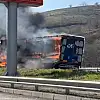 Gürcistan Tiflis'ten Kütahya'ya hurda karton götüren tır, Samsun'da Karayolları Denetleme İstasyonu'nda alev alev yandı.