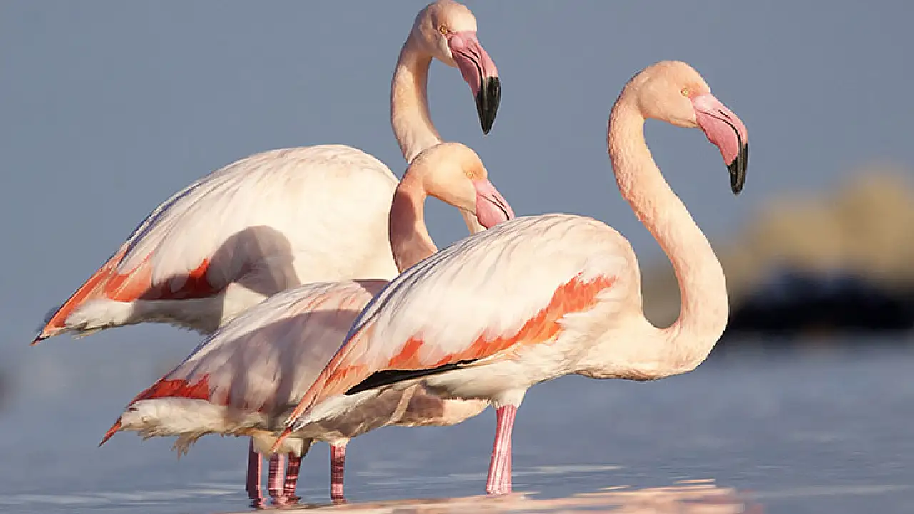 Kastamonu'nun Abana ilçesinde Ezine Çayı'na gelen 3 flamingo, ilçede yaşayan vatandaşlar ve doğaseverler tarafından ilgiyle karşılandı. Karadeniz'de etkili olan olumsuz hava koşulları nedeniyle çay yatağındaki güvenli alanı tercih eden flamingolar, bölgede görsel bir şölen sundu.