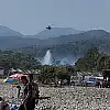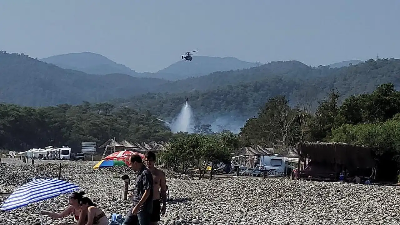 Alevlerin önünün kesilmesinin ardından uçaklar bölgeden ayrılırken, helikopterler havadan soğutma çalışmasına devam etti.