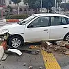 Kaza sırasında trafik ışıklarının çalışmadığı belirlenirken, araçlardan birisi çarpmanın şiddetiyle yoldan çıkıp kaldırıma çarparak durabildi.