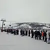 Ladik ilçesindeki Akdağ Kayak Merkezi'ne akın eden kayakseverler kuyruklar oluşturdu