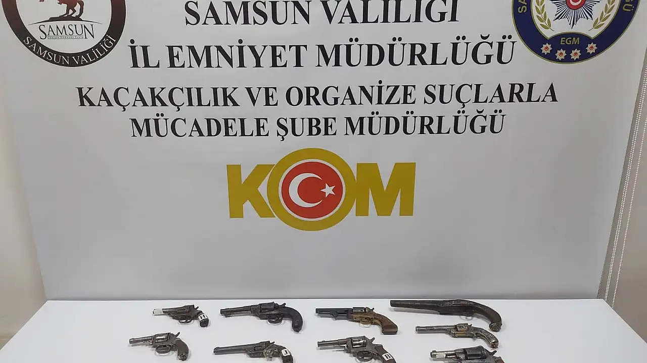 Samsun'da 'Kayıp' olarak bildirilen tescile tabi kültür varlığı kapsamındaki tabancalar, KOM ekiplerinin Tekkeköy ve Atakum'da gerçekleştirdiği aramalarda evlerden çıktı. Bu kapsamda 13 tabanca ele geçirildi.