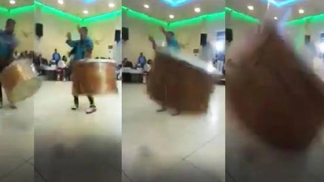 Çarşamba'da gerçekleşen bir düğünde, davulcunun sahnede şov yaptığı sırada davulun kayışının kopması sonucu fırlayarak, gösteriyi cep telefonu ile görüntüleyen kadına çarptı