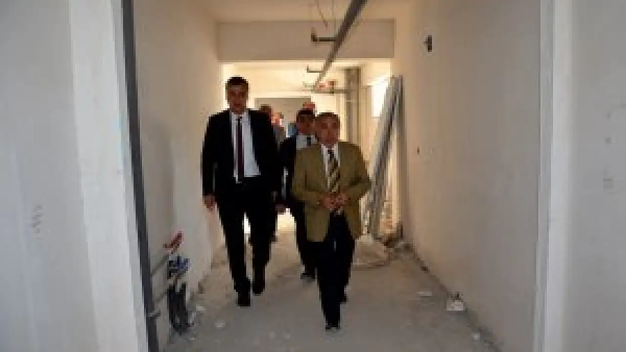 Kaymakam Halis Arslan, İlçe Milli Eğitim Müdürü M. Ali Katipoğlu ile birlikte ilk olarak 300 kişilik Fen Lisesi Öğrenci Pansiyonu ve 250 kişilik spor salonu inşaatında incelemelerde bulunarak çalışmalar hakkında bilgi aldı.