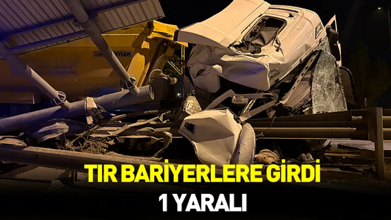 Sürücüsünün direksiyon hakimiyetini kaybettiği tır bariyerlere çarptı. Kazada sürücü yaralandı. Tır hurdaya döndü.