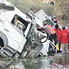 Kazaya sebep olduğu öne sürülen 06 BF 7059 plakalı kamyonun dere yatağından çıkarılmasının ardından ön camının üzerindeki yazı dikkat çekti. “Kadir İnşaat” yazısındaki “D” harfinin ortasına gelen bant nedeniyle ilk bakışta “Kabir İnşaat” olarak okunduğu görüldü.