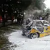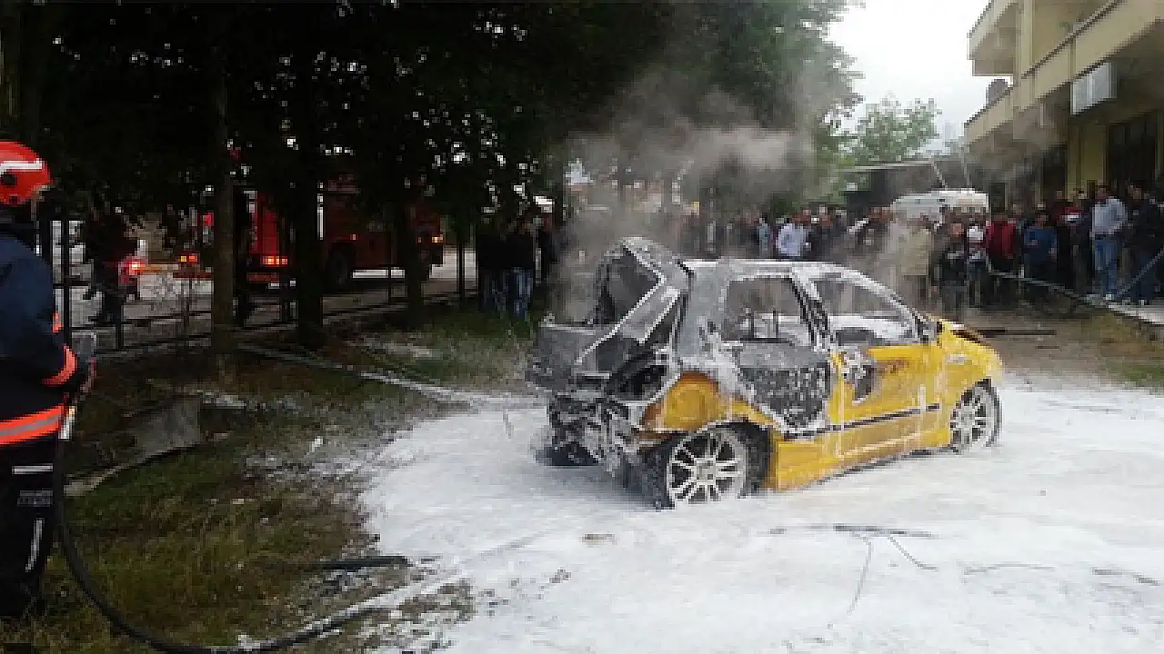 Kaza yerine gelen Sakarya Büyükşehir Belediyesi Akyazı itfaiyesi alev topuna dönen aracı söndürürken, polis kazayla ilgili soruşturma başlattı.